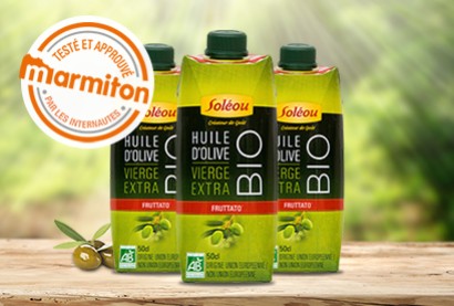 Le mois dernier 100 internautes Marmiton ont eu la chance de recevoir notre huile d'olive biologique Fruttato en emballage Tetra Prisma® 50cl. Plébicitée pour son goût fruité, notre huile a séduit l'ensemble des testeurs qui lui ont attribué une note moyenne de 4,6 sur 5 !