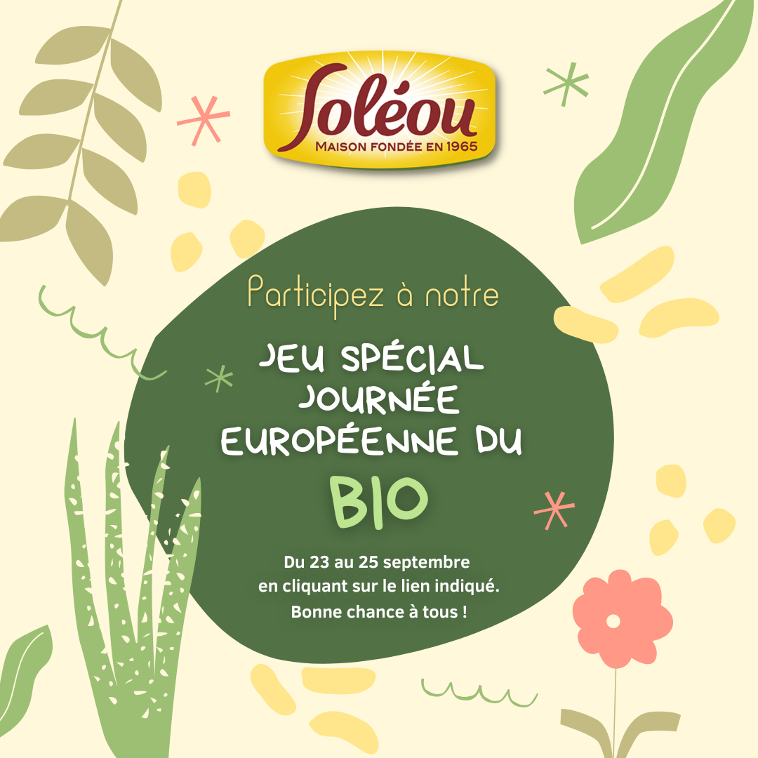 Soléou organise un jeu spécial pour la Journée Européenne du Bio du 23 au 25 septembre 2022.